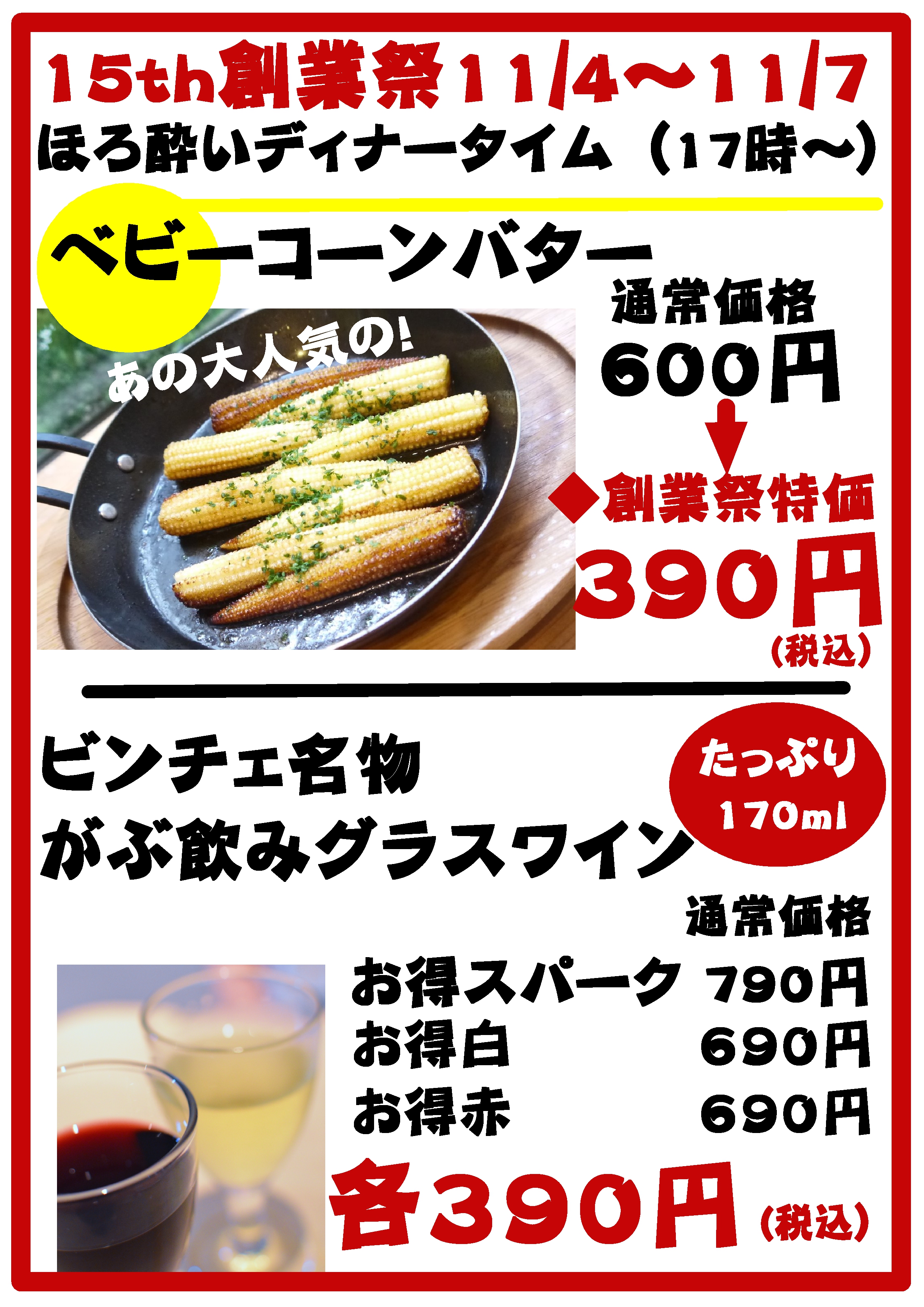 力及ばずのビンチェですので創業祭といっても大したことができず。。。