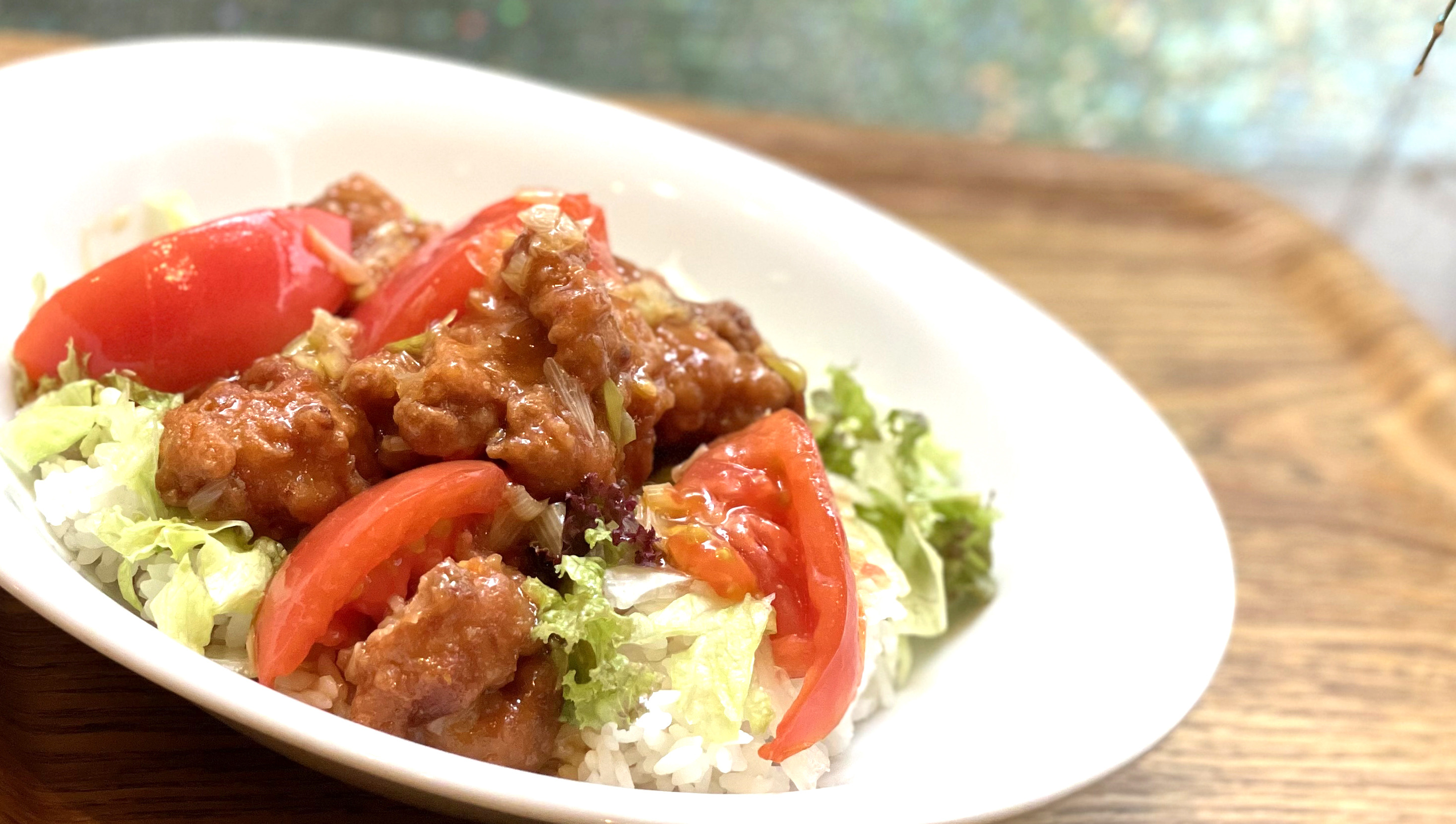 ●鶏唐揚げとトマトの甘酢あんかけDON