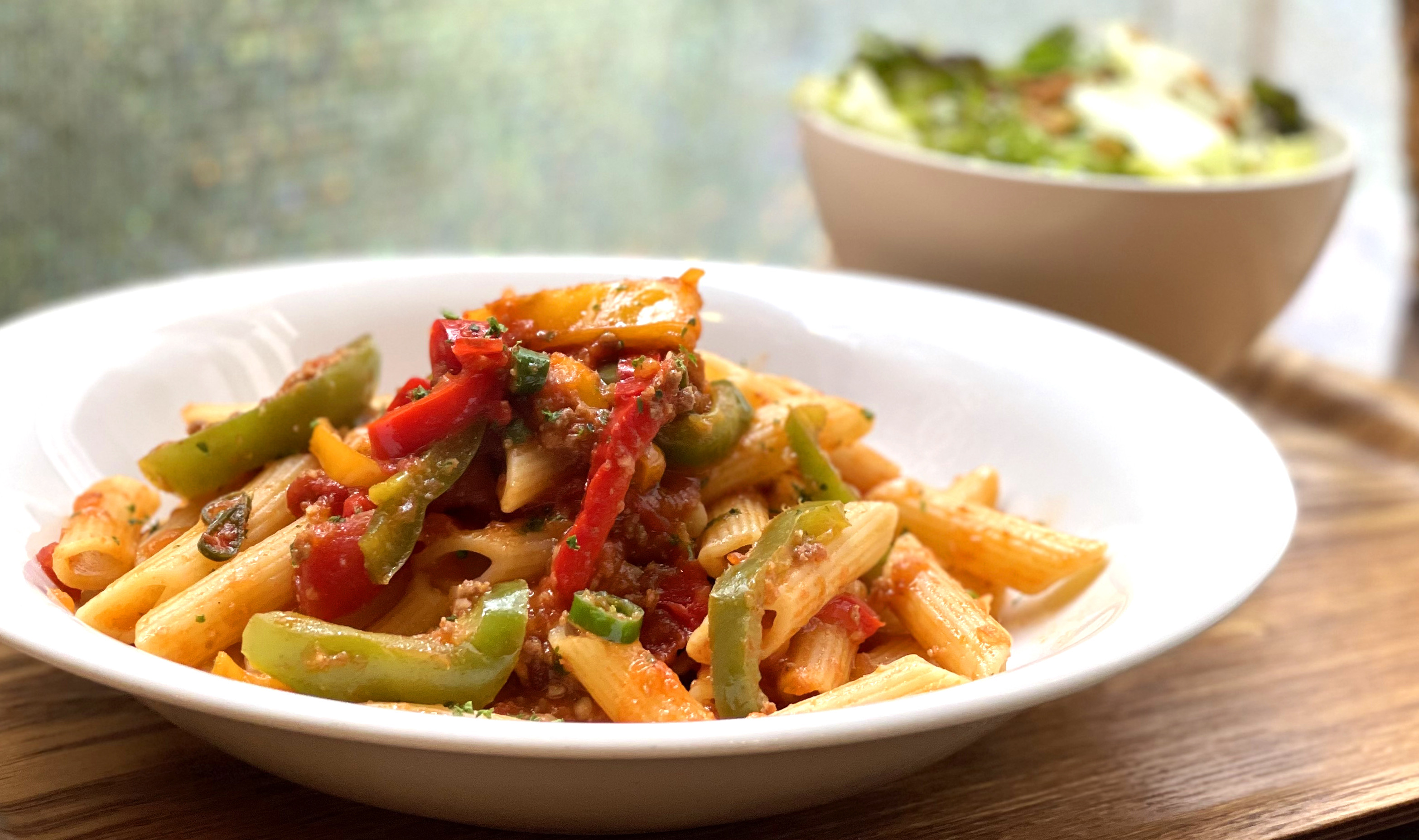 ●牛挽き肉と彩り野菜の青唐辛子ペンネアラビアータ 1080円