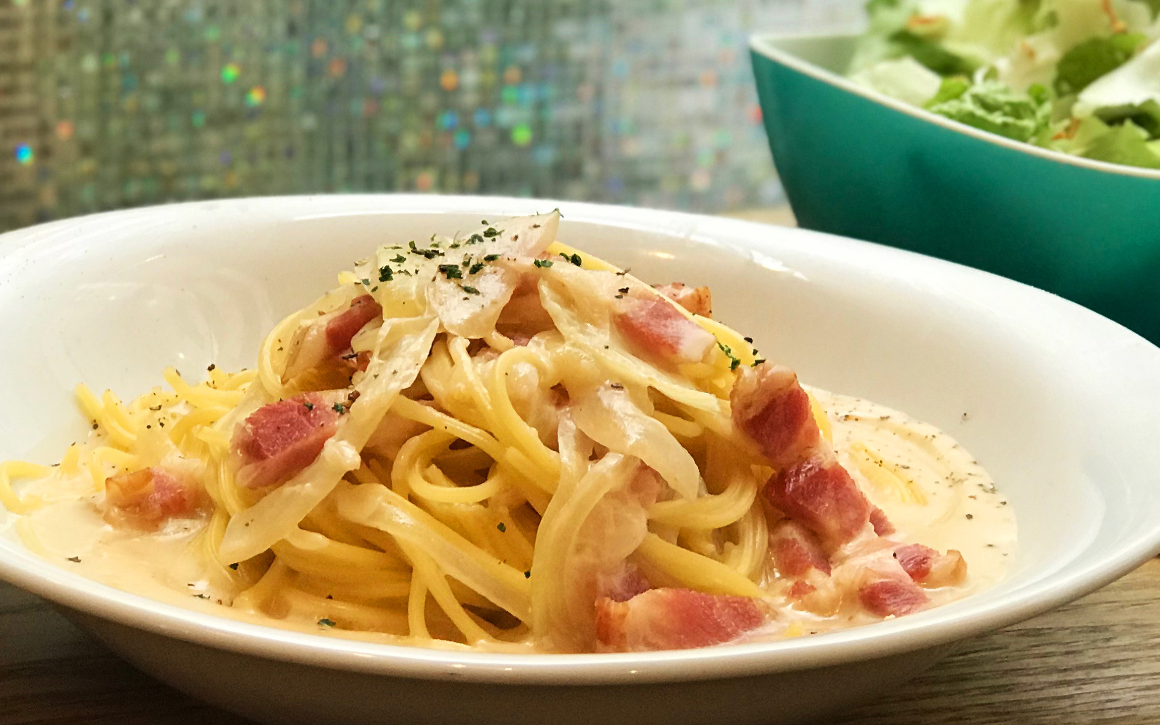 ●イベリコ豚ベーコンと玉葱のビーフクリームスパゲティ 1080円
