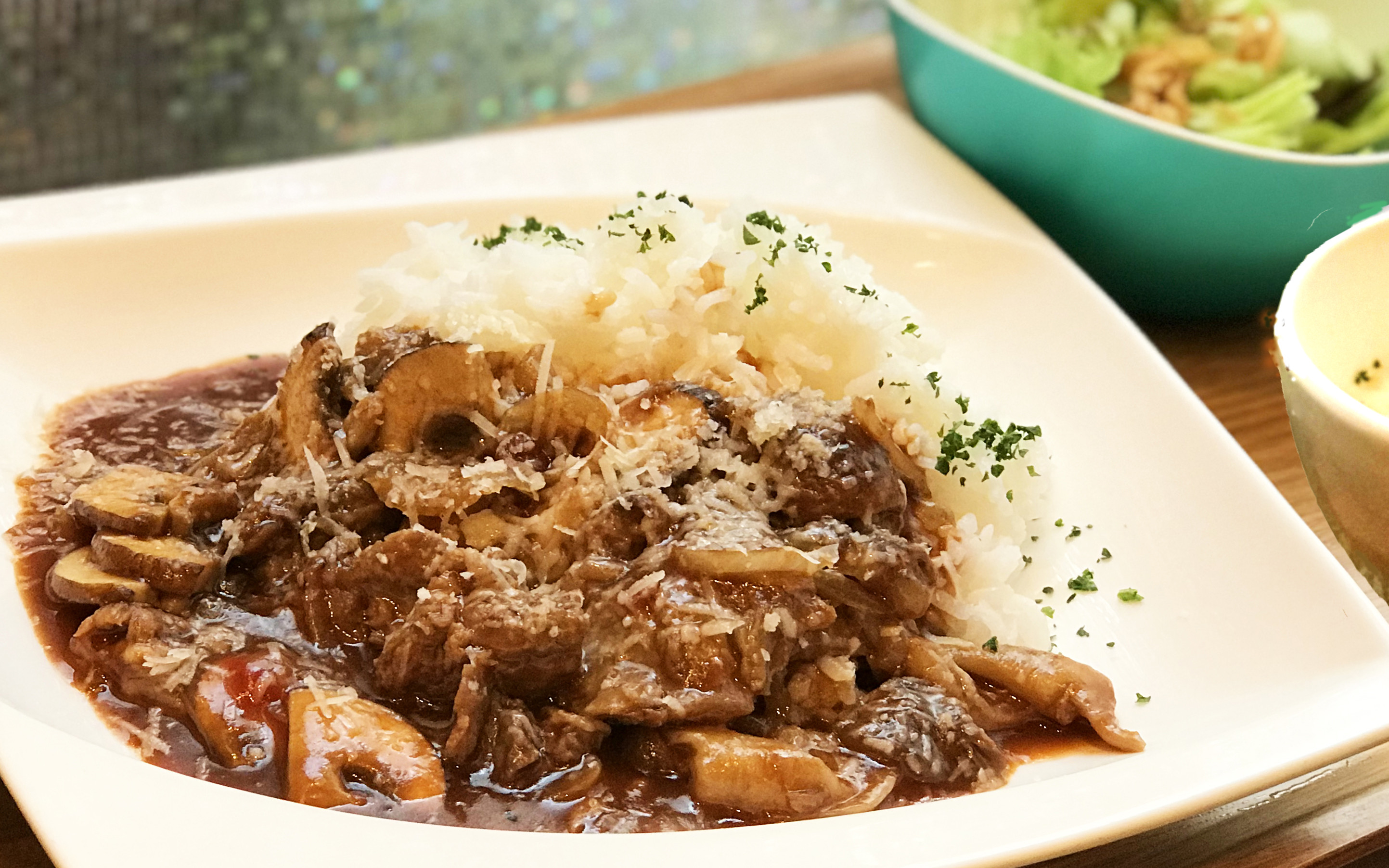 ●パルミジャーノレジャーノ香り牛すじ肉とキノコのハヤシライス 1300円