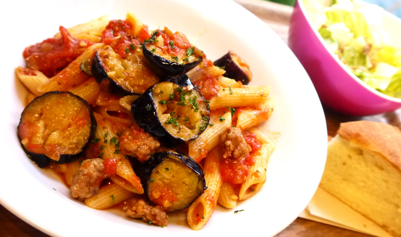 ● 茄子と生ソーセージの青唐辛子ペンネアラビアータ 1080円